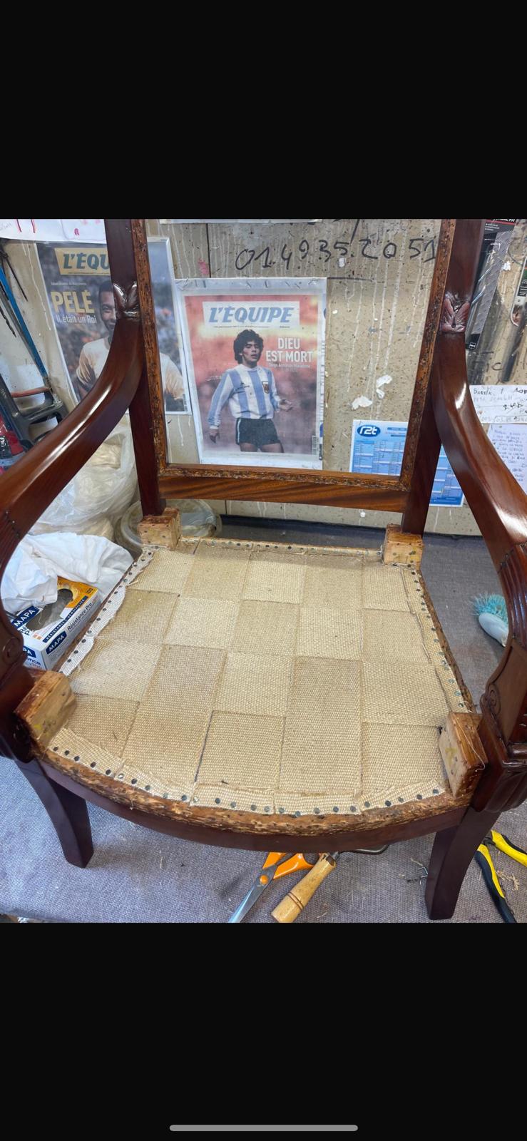 Nous réparons toutes les parties de vos fauteuils, qu’il s’agisse de l’assise, des accoudoirs ou de la structure. Chaque réparation est pensée pour redonner confort, sécurité et esthétique à votre meuble, tout en préservant son caractère unique.